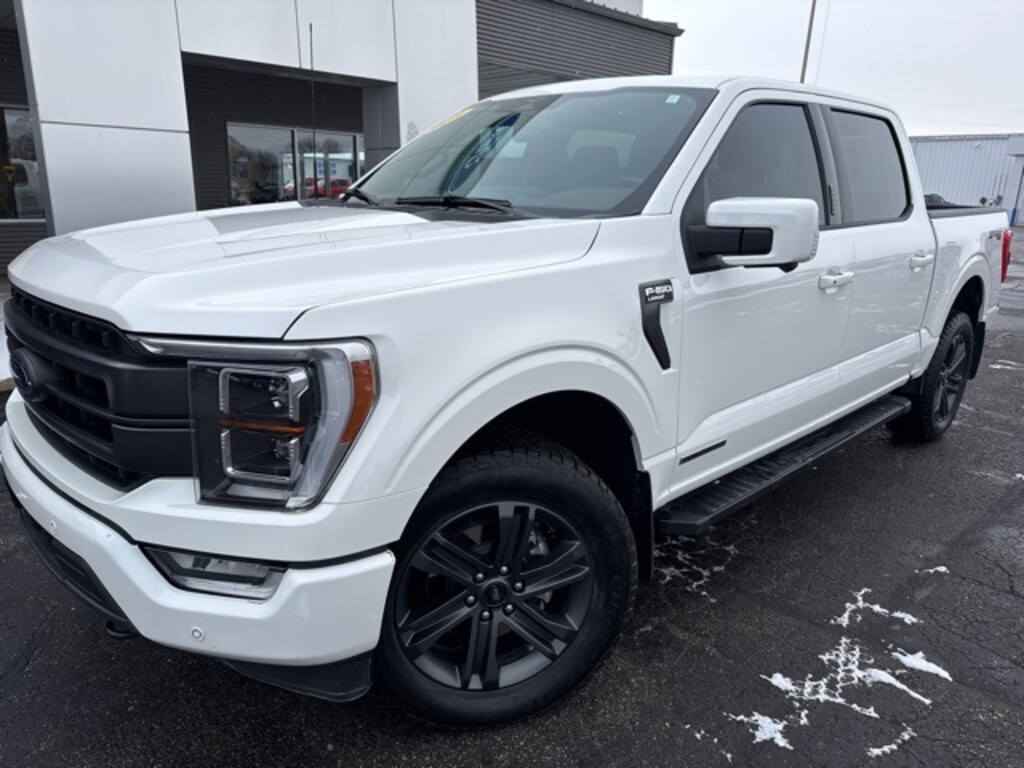 3.5L PowerBoost Full-Hybrid V6, 4WD, 2nd Row Heated Seats, Accent-Color Angular Step Bars, Bed Utility Package, Body-Color Front & Rear Bumpers, Box Side Decals, BoxLink, Chrome Single-Tip Exhaust, Class IV Trailer Hitch Receiver, Connected Built-In Navigation, Dark 2-Bar & 1 Minor Bar Style Grille, Equipment Group 502A High, Evasive Steering Assist, Extended Range 36 Gallon Fuel Tank, Ford Co-Pilot360 Assist 2.0, Integrated Trailer Brake Controller, Intelligent Adaptive Cruise Control w/Stop & Go, Intersection Assist, Lariat Sport Appearance Package, LED Box Lighting, LED Projector w/Dynamic Bending Headlamps, Max Trailer Tow Package, Power Tailgate, Power Tilt/Telescoping Steering Column w/Memory, Pro Trailer Backup Assist & Pro Trailer Hitch Assist, Rain-Sensing Wipers, Speed Sign Recognition, Tailgate Step w/Tailgate Work Surface, Wheels: 20" Chrome-Like PVD, Wireless Charging Pad. BZ Auto Group applies a Doc Fee of $251.05, plus Indiana Sales Tax and Title Fees, to the final purchase price of every vehicle sale. CARFAX One-Owner. Star White Metallic Tri-Coat 2023 Ford F-150 Lariat 4WD 10-Speed Automatic 3.5L PowerBoost Full-Hybrid V6